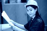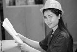 Portrait of a young woman Asian engineer smiling confidently while reading blueprints in a factory office, engineering technology concept