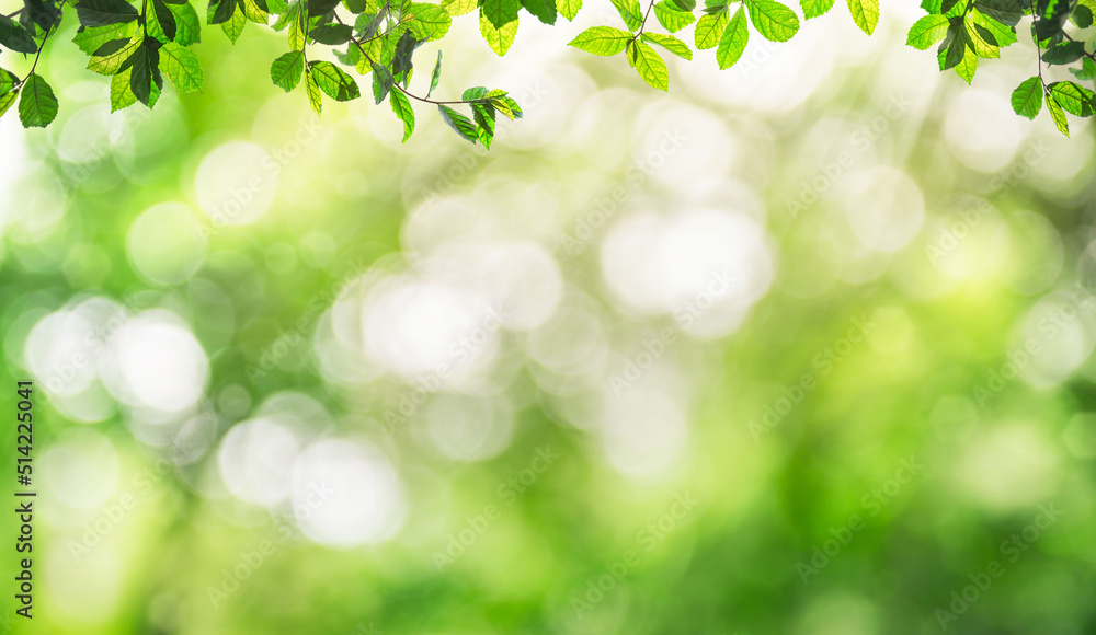 Fresh and green leaves green bokeh on nature abstract blur background green bokeh from tree.Mock up for display. montage of product,Banner or header for advertise on social media,Spring and Summer.