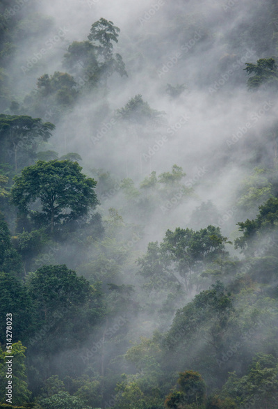 Tropical forest in the morning mist. Bwindi Impenetrable National Park Uganda. Africa.