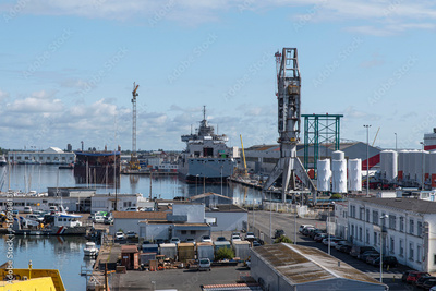 Urban landscape of the city and port of Saint Nazaire in Brittany, France