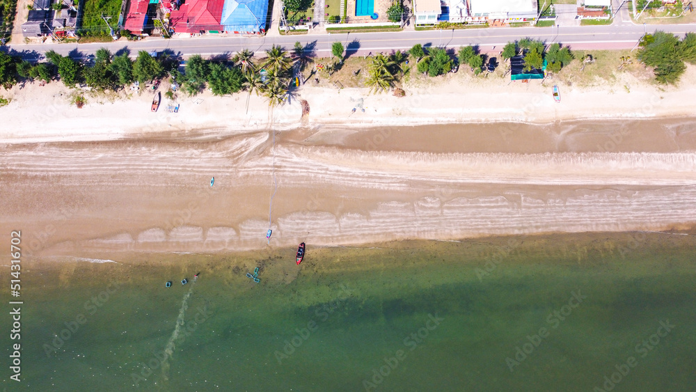 White sand beach turquoise sea wave aerial view copy space Sam Roi Yot Thailand