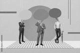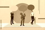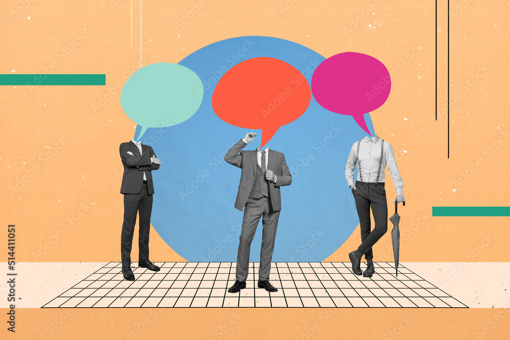Exclusive minimal magazine sketch collage of three men empty space instead of heads isolated picture background