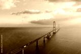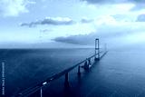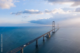 Aerial view on the famous Great Belt bridge (Østbroen) in Denmark, a multi-element fixed link crossing the Great Belt strait between the Danish islands of Zealand and Funen