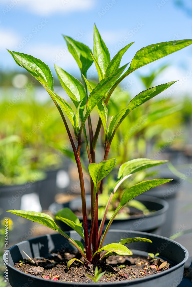 Plant seedlings for sale. Young sprouts for planting in the ground.