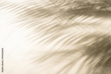 The shadow of a palm tree branch on the sand of a sandy tropical beach. Background, copy space, travel, summer concept.