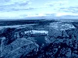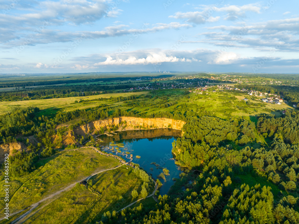 Turquiose Water and Wooden Bridge. Aerial Landscape. Park Grodek in Jaworzno, Poland. Polish Maldives.