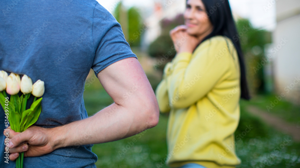 Family photo. Family photo. Flowers. Man and woman.