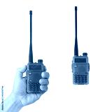 The hand of a man holding a walkie-talkie isolated on white background with clipping path