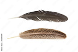 Feather of turkey and chicken feather isolated on a white background