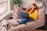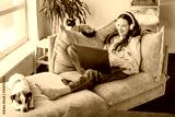 Relaxing young woman using laptop in living room