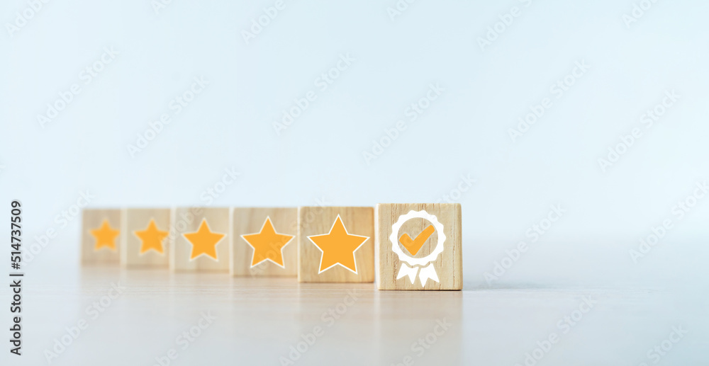 Business concept of happy customer review 5 stars rating in excellent service satisfaction. Idea of loyalty client positive feedback with satisfied and enjoy in product best experience