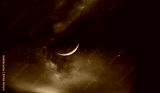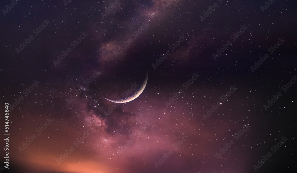 sunset light moon on blue starry cloudy sky nebula cosmic planet universe