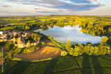 Aerial view of one of the best village of Italy with heart-shaped lake, Castellaro Lagusello, Mantova, Italy