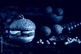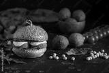 Vegetarian falafel burger. Black rustic background. Side view, selective focus.