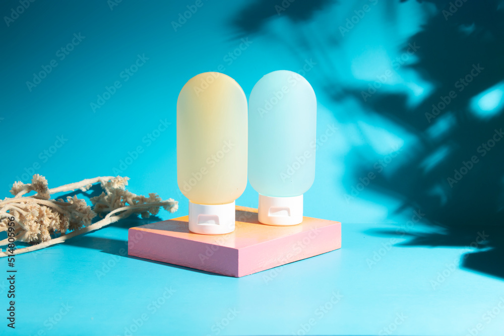mockup tube bottle for skin care cosmetic summer sunscreen, product branding, cream lotion treatment