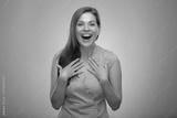 isolated amazed business woman portrait, surprising business person, teacher or female adult student