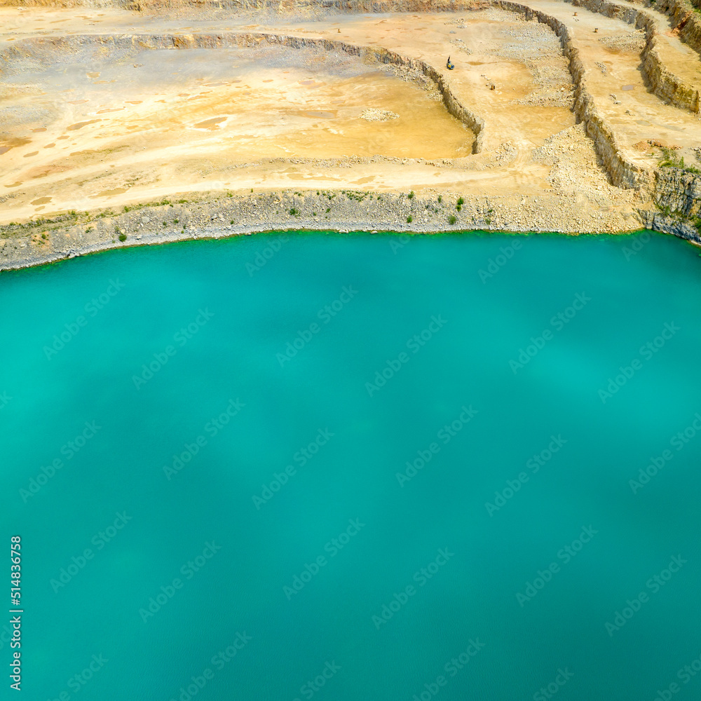 Mining from above. Industrial terraces on open pit mineral mine. Aerial view of opencast mining. Dolomite Mine Excavation. Extractive industry.