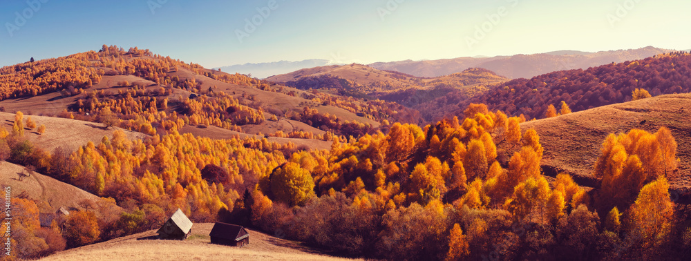 beautiful autumn landscapes in the Romanian mountains, Fantanele village area, Sibiu county, Cindrel mountains, Romania