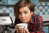 Young relaxed woman drinking coffee