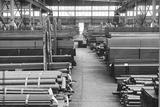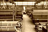 Rolled metal warehouse. large volumes of metal materials in the factory