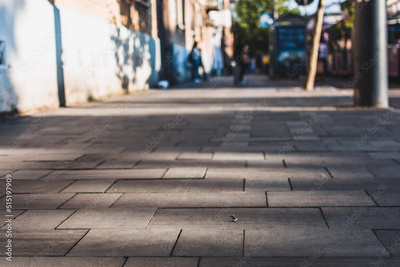 Blur sidewalk with pavement in an urban area with traffic in daytime