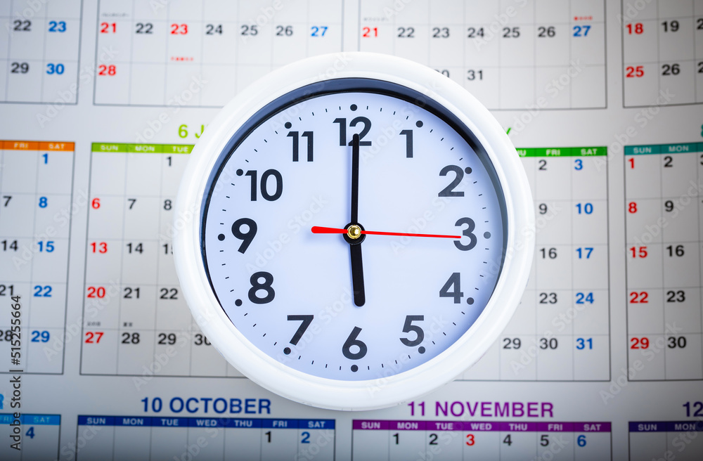 時計とカレンダー(予定・スケジュール・遅刻・締め切り・期日・時間の抽象的なイメージ)