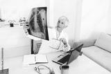Female doctor looking chest x-ray film in hospital. Doctor examining a lung radiography. Doctor checking chest x-ray film at hospital.