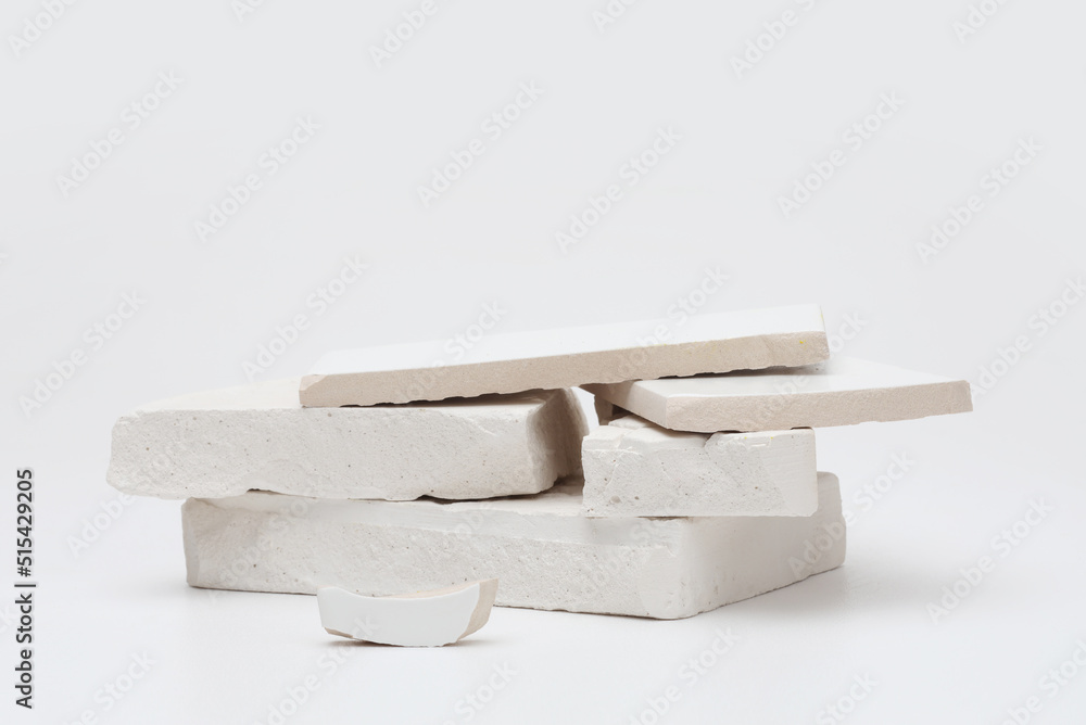 Stack stones platform podium on gray light copy spase background. Minimal empty display product presentation scene.
