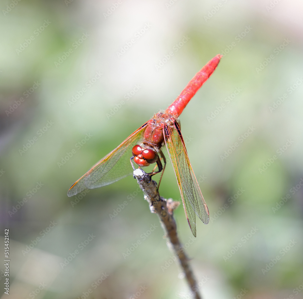 Flame (firecracker) Skimmer resting on plant. Foothills Park, Santa Clara County, California, USA.