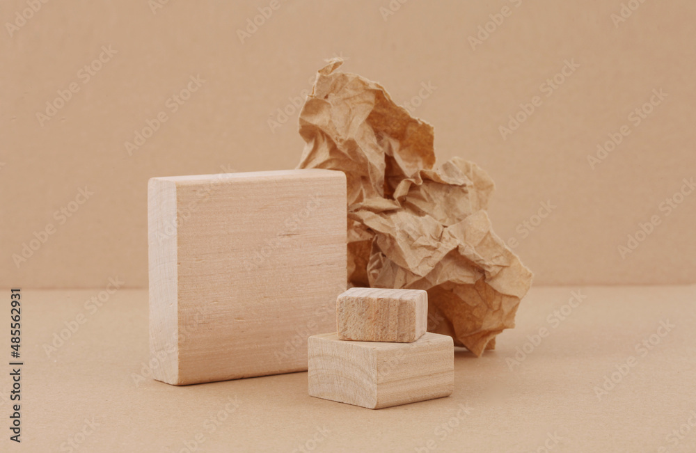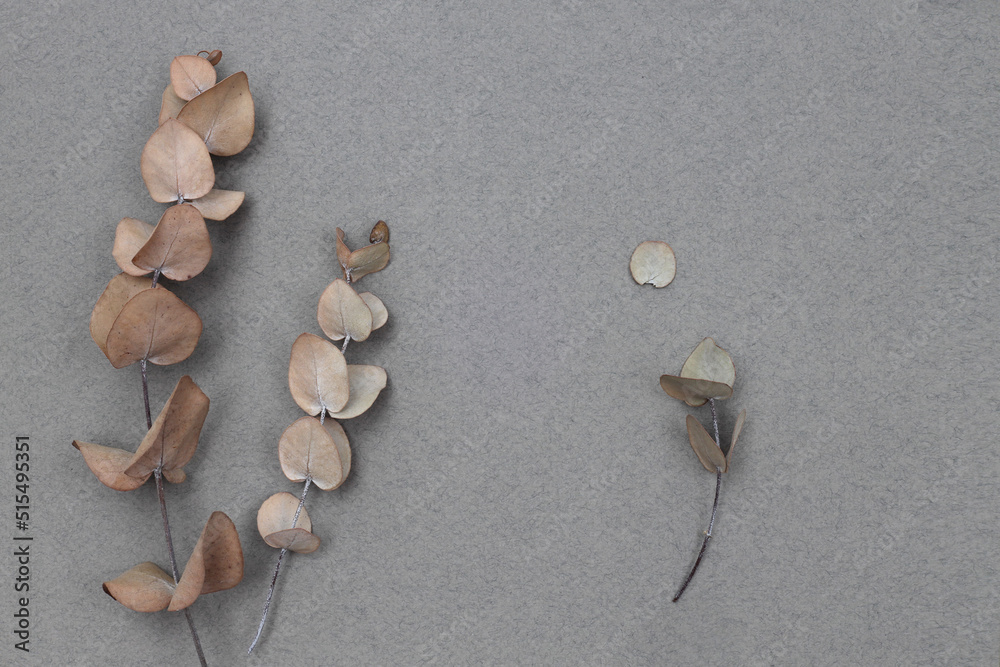 Empty Blank texture canvas paper and eucalyptus leaf branch with copy space for your text message. Minimalism style template background. Flat lay, top view.