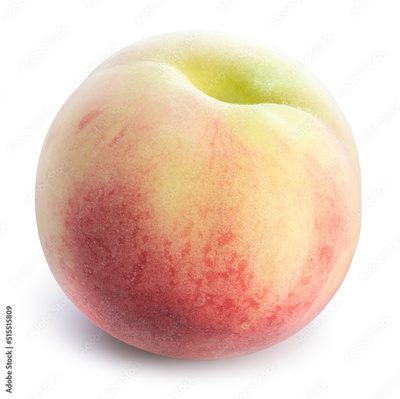 Sweet Pink and yellow Peach fruit with leaf isolated on white background, Fresh Peach on bamboo basket over White Background With clipping path.