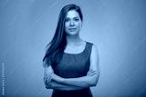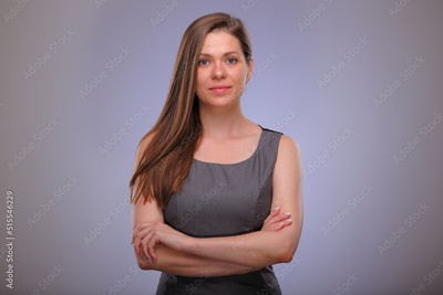 Smiling business woman with arms crossed, teacher or adult student isolated female portrait.