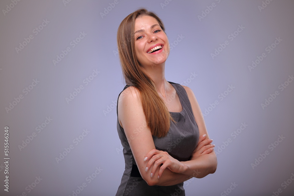 Laughing business woman, teacher or adult student isolated female portrait with mouth open.