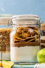 Homemade food in jars, food background