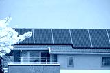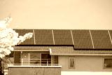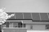 桜の花とソーラーパネルのある家 太陽光 発電 エコシステム