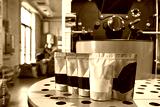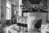 Packages with variety coffee on roasting machine