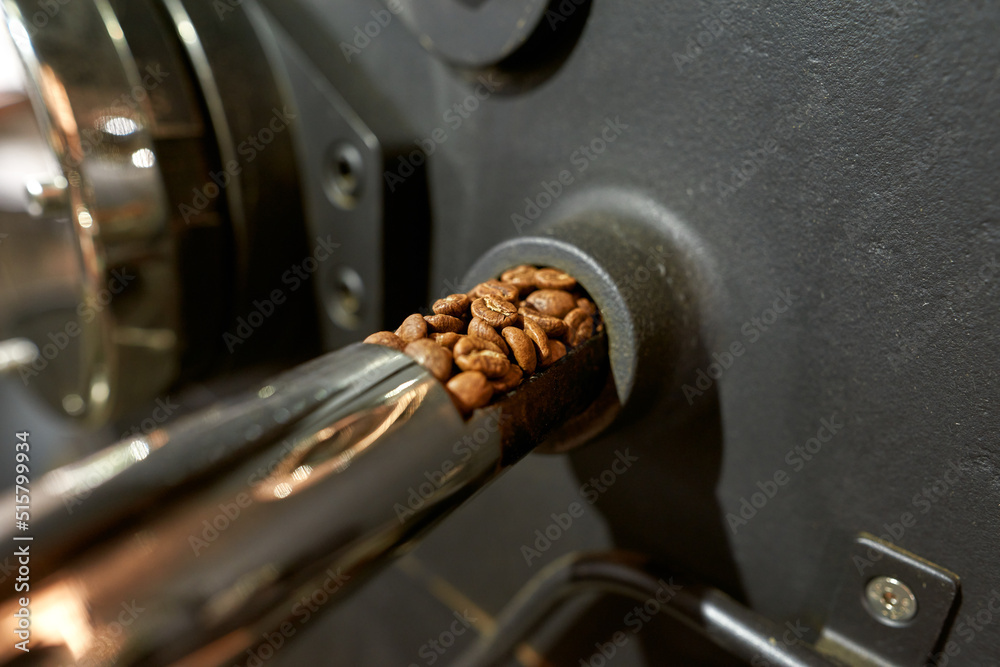 Cropped close up of coffee roasting machine