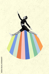 Vertical active energetic girl black white colors jumping drawing colorful shadow isolated on painted background