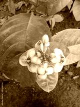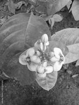 ornamental plant Pseuderanthemum maculatum or commonly known as yellow veined eranthemum or golden pseudoranthemum. The flowers are white with pink spots in the middle.
