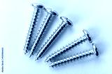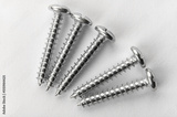 five screws on white paper. detailed macro photo. Self Tapping Screws. Set of screw
