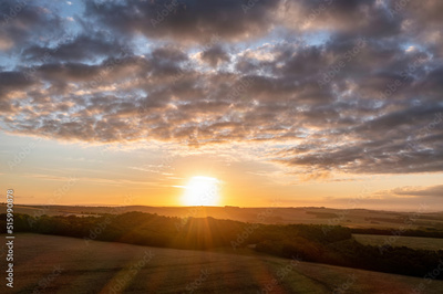 Gorgeous aerial drone landscape image of South Downs NP at sunrise in Summer
