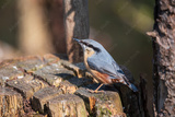 Beautiful image of Nuthatch bird Sitta Europaea on fence post in landscape setting in Spring