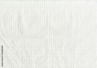 High resolution large image of a white uncoated checkered graph paper scan wrinkled weathered old thin textbook paper with gray checkers copy space for text for presentation high quality wallpaper