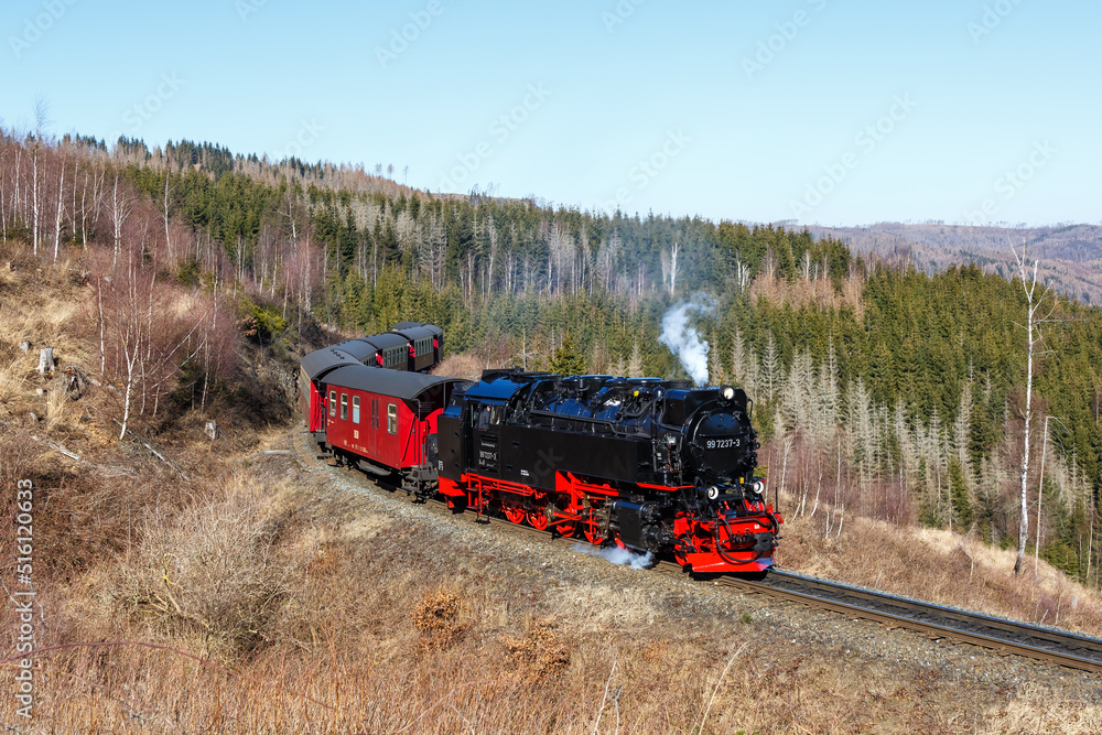Brockenbahn Steam train locomotive railway near Drei Annen Hohne in Germany