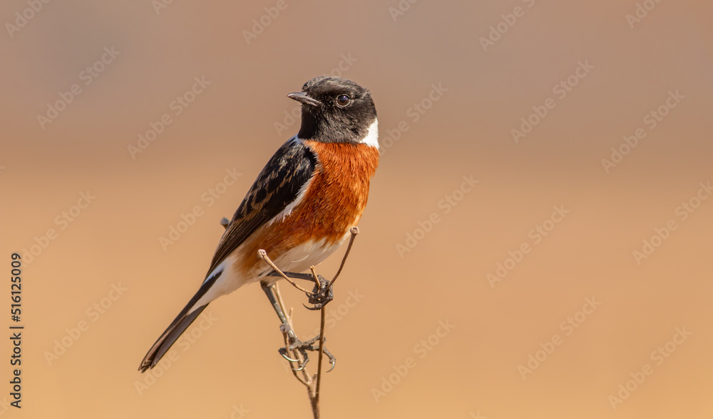 African stonechat in South, Africa ; Specie Saxicola torquatus family of Musicapidae