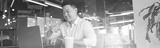 businessman communicating in video call with deaf client at workplace in office. Blurred background