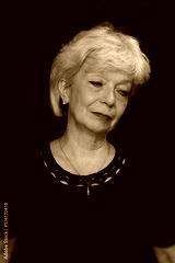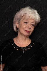 Portrait of a thoughtful elderly woman 60-65 years old on a black background