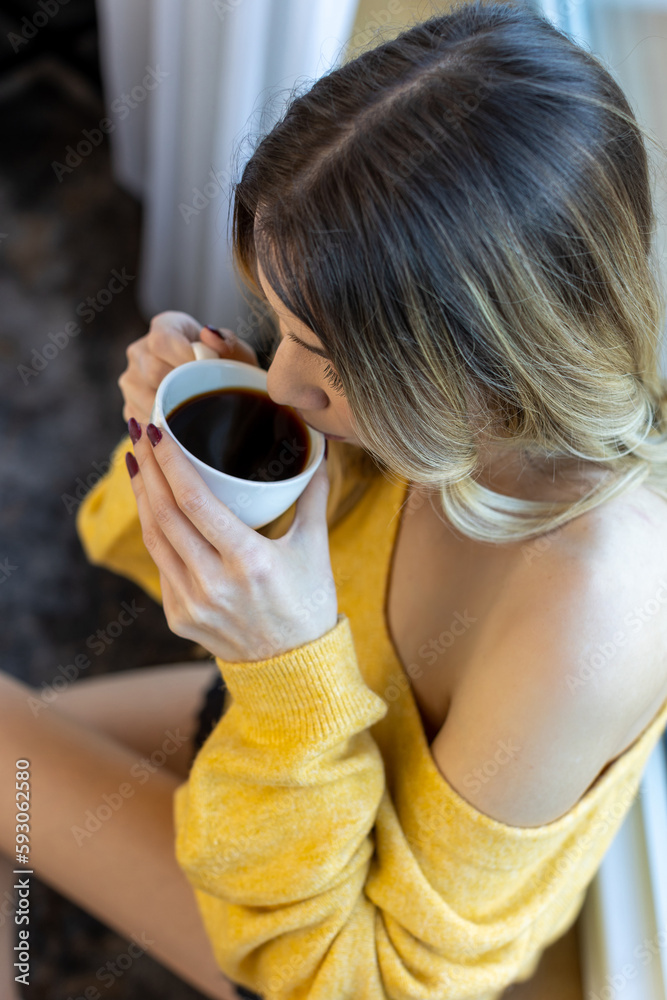 Beautiful young woman in underwear sitting in a hanging egg chair