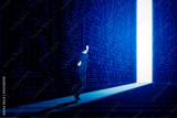 Male manager running fast toward bright way