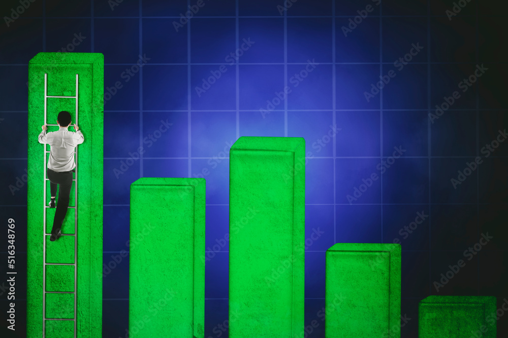 Businessman climbing a declining graph
